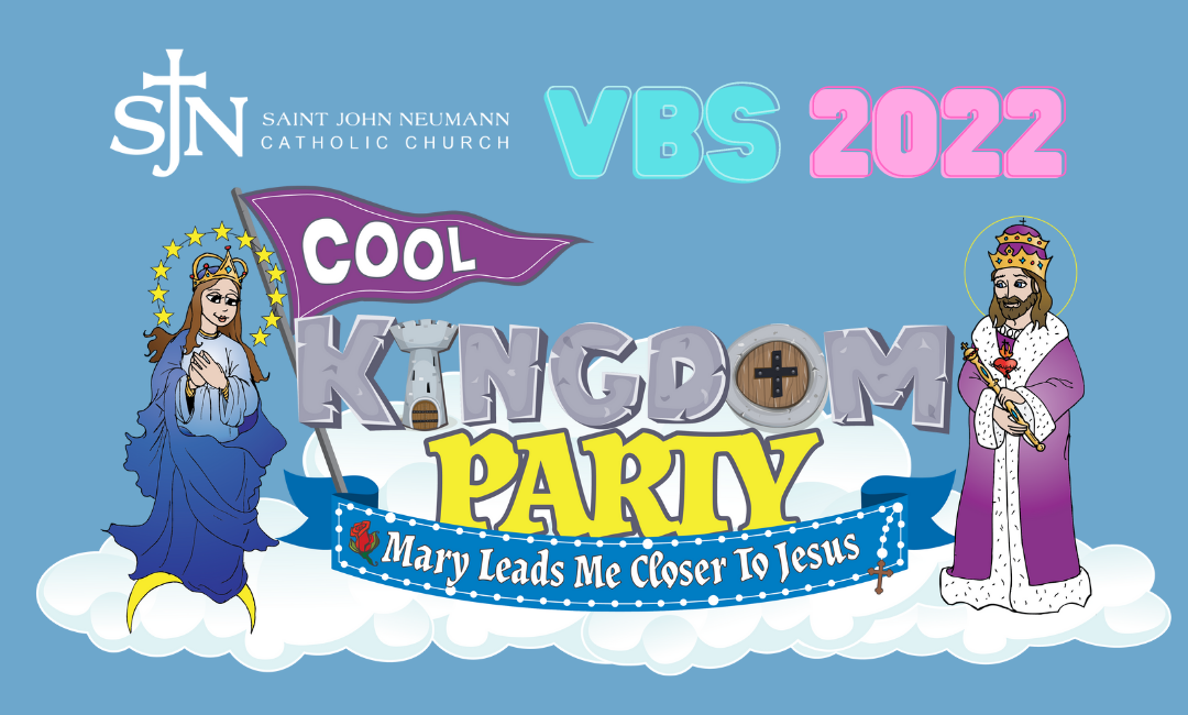 We had an amazing week at VBS last week! Our theme was Cool Kingdom Party: Mary Leads Me Closer to Jesus. The week was a huge success, with 113 registered attendees and many parent and teen volunteers. Everyone enjoyed the music, singing, dancing, crafts, games, and faith-building activities…not the mention the closing concert and pizza party!